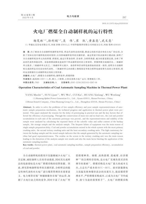 Key words:thermal power plant,coal automatic sampling machine,sample preparation efficiency,accumulation