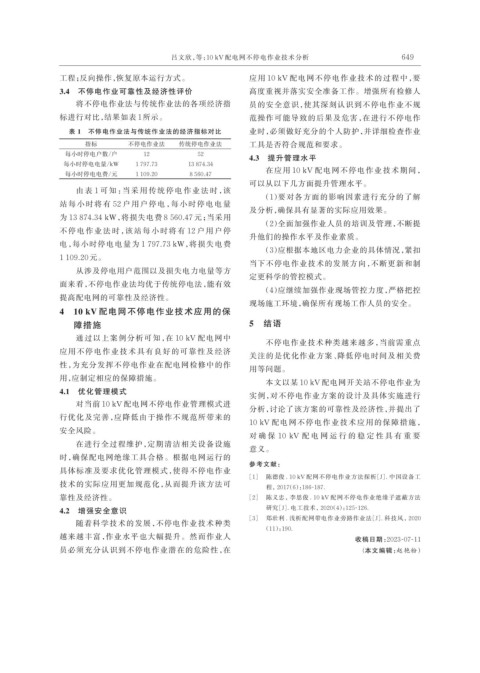 工程;反向操作,恢复原本运行方式。 应用 10 kV 配电网不停电作业技术的过程中,要