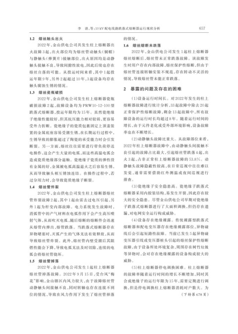 2022 年,金山供电公司发生柱上熔断器熔丝 熔断器采用内胶装结构,易发生开裂,因此存在较