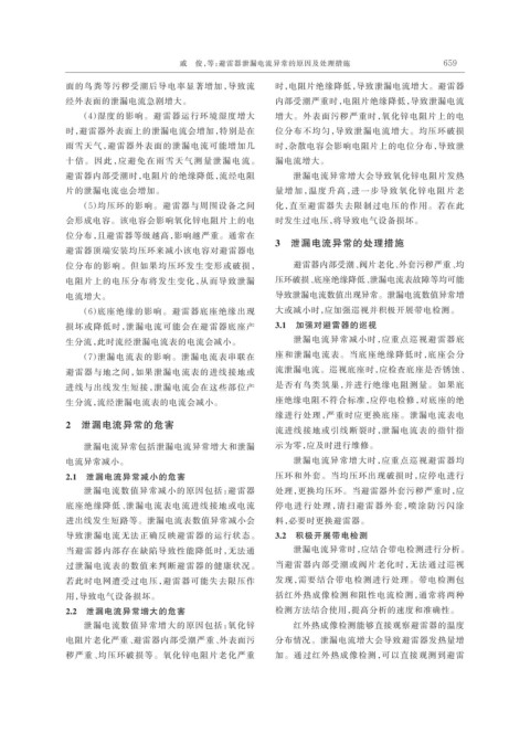 戚 俊,等:避雷器泄漏电流异常的原因及处理措施 659