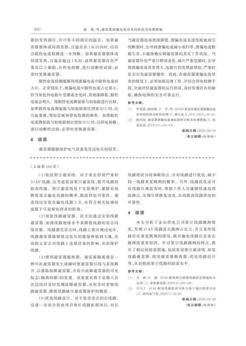 在巡线时及时发现故障避雷器,从而及时更换线 应用 [J] 电瓷避雷器,2020(4):143-149.