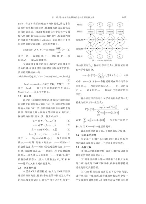 式 中 σ——Sig mod 函 数 ; [, ]—— 两 个 向 量 拼 本 文 基 于 BERT-BIGRU-CRF 地 址 解 析 模