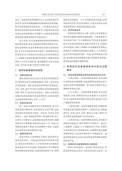 临的复杂形势,提出电网设备管理体系建设目标, 技术与传统设备管理业务融合程度不高,设备状