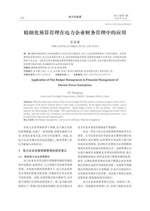 致不同部门之间的发展进度不一致,这可能会影 电力企业的预算管理不仅是一项财务工作,