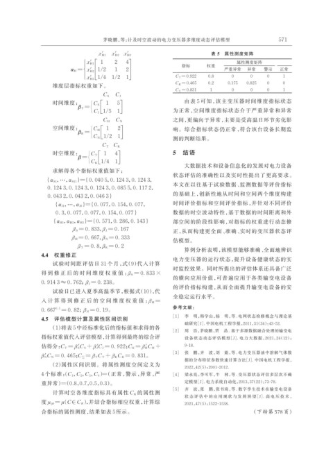 时间维度: { C S é 1 ú ú ù 5 由表 5 可知,该主变压器时间维度指标状态