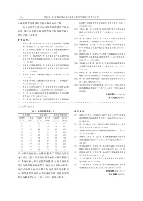 测试条件 本文方案 常规加热器方案 [1] 舒胜文,许俊炜,占兆璇,等 . 高湿环境下 40.5 kV 开关柜凝