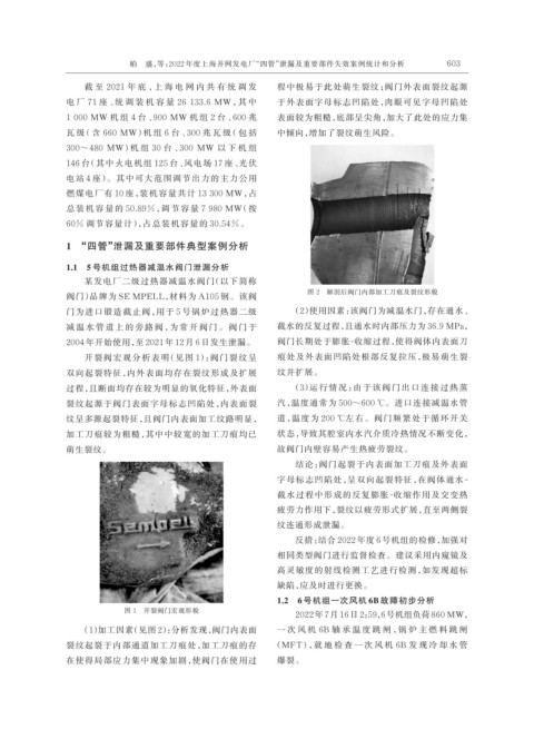 截 至 2021 年 底 ,上 海 电 网 内 共 有 统 调 发 程中极易于此处萌生裂纹;阀门外表面裂纹起源