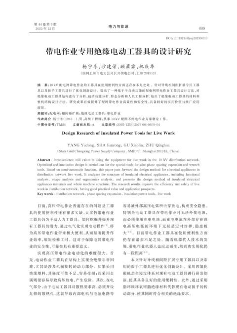 关键词:配电网;相间距扩展;绝缘电动工器具;带电作业