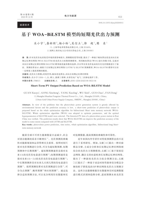 Key words:photovoltaic power prediction,time series,whale optimization algorithm,bidirectional long/short-