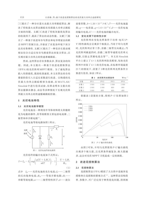 618 白荣格,等:基于改进花授粉算法的光伏最大功率点追踪研究
