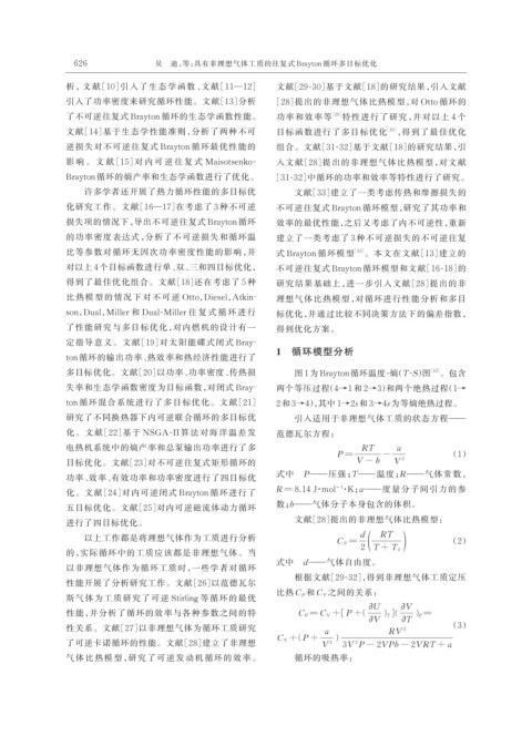 影 响 。 文 献[15]对 内 可 逆 往 复 式 Maisotsenko- 入文献[28]提出的非理想气体比热模型,对文献