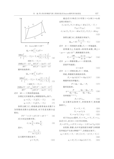 吴 迪,等:具有非理想气体工质的往复式 Brayton 循环多目标优化 627