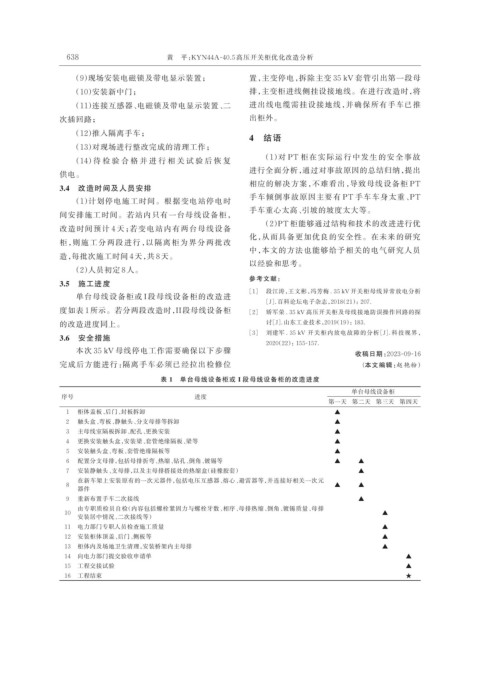 度如表 1 所示。若分两段改造时,I 段母线设备柜 [2] 矫军荣 . 35 kV 高压开关柜及母线接地防误操作回路的探