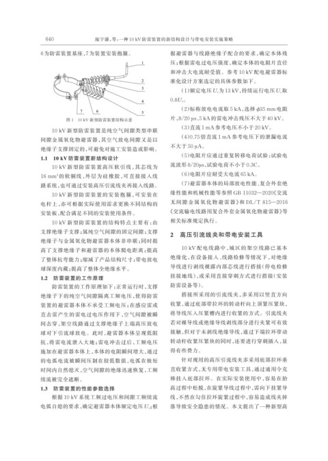 10 kV 新型防雷装置的安装抱箍,可安装在 缘性能和机械性能等参照 GB 11032—2020《交流