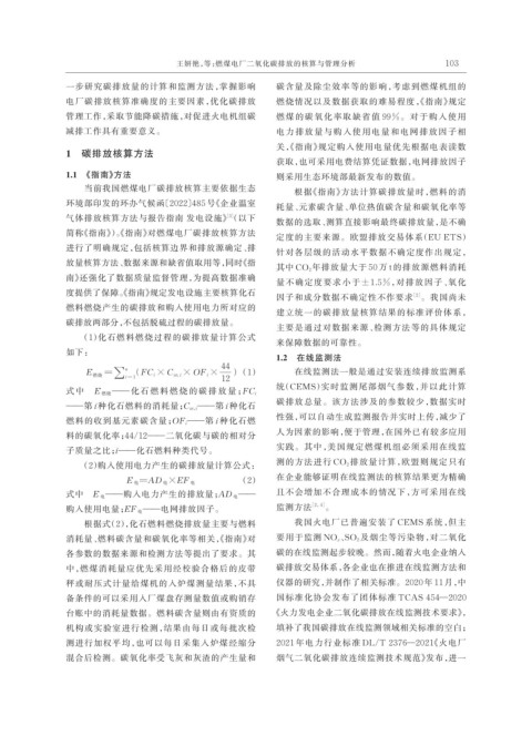 王妍艳,等:燃煤电厂二氧化碳排放的核算与管理分析 103