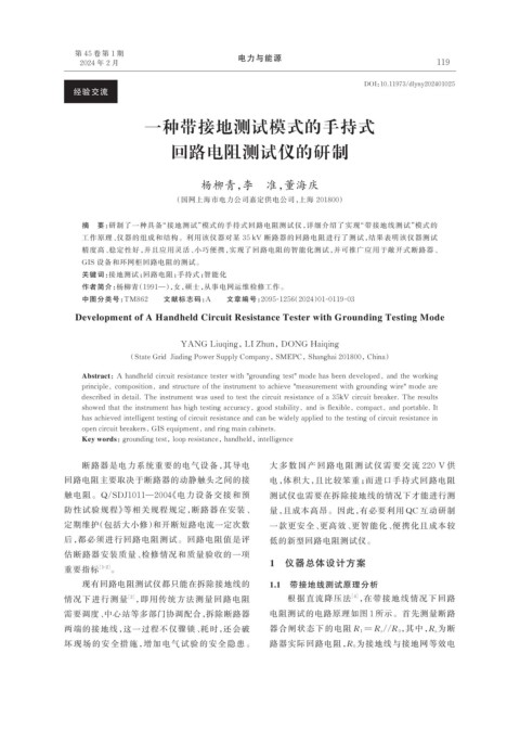 摘 要:研制了一种具备“接地测试”模式的手持式回路电阻测试仪,详细介绍了实现“带接地线测试”模式的