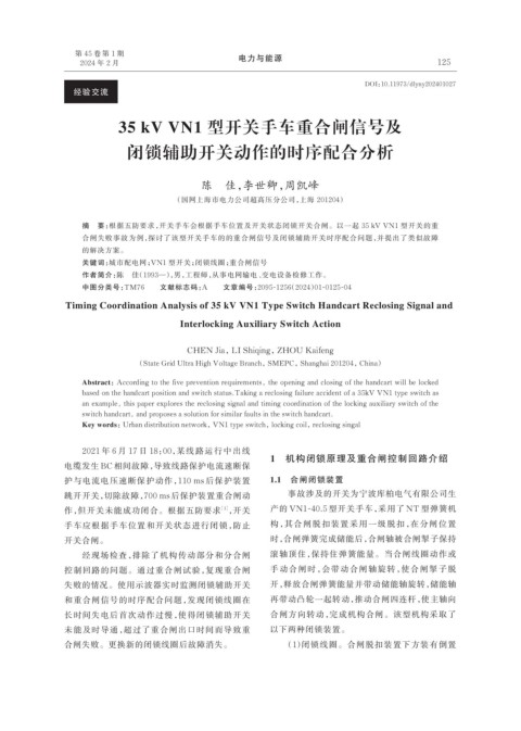 Timing Coordination Analysis of 35 kV VN1 Type Switch Handcart Reclosing Signal and