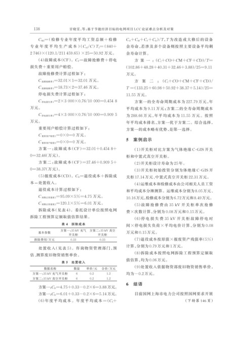 方 案 一 :故 障 成 本(CF)=32.01+0.454 8+ (1)开关柜对比方案为气体绝缘 C-GIS 开关