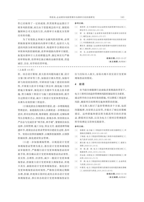 施,努力确保工程设计与施工建设衔接协同,提升 电力工程项目的造价管理和风险控制显得尤为重要。