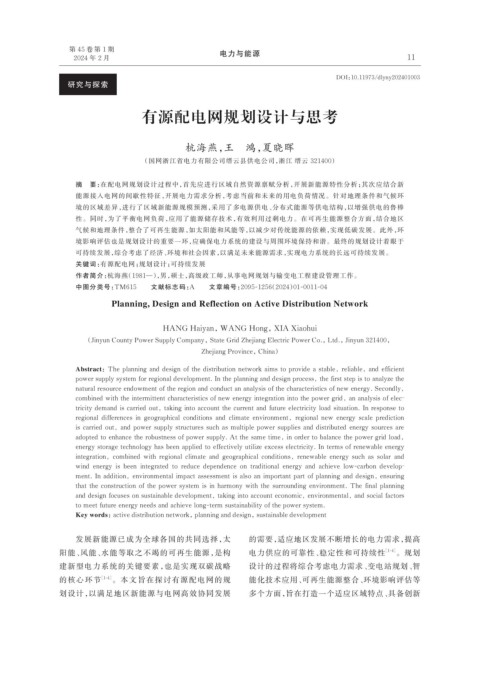 的核心环节 [1-4] 。本文旨在探讨有源配电网的规 能化技术应用、可再生能源整合、环境影响评估等