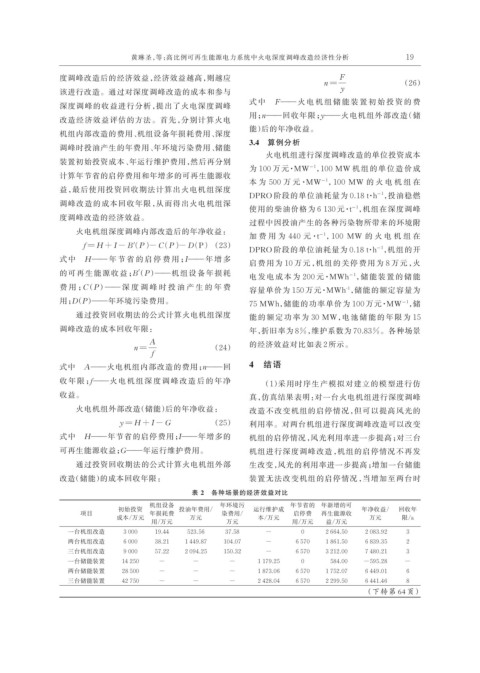收年限 ;——火电机组深度调峰改造后的年净 (1)采用时序生产模拟对建立的模型进行仿