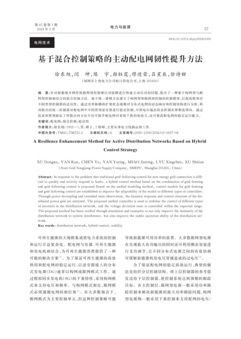 不同类型控制器的适应性。通过功率解耦和扩展状态观测对分布式电网的动态响应和控制结构进行分析,利