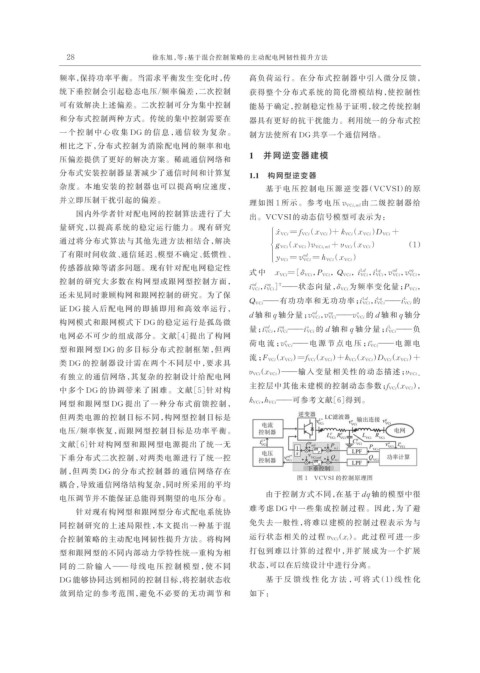 国内外学者针对配电网的控制算法进行了大 出。VCVSI 的动态信号模型可表示为: