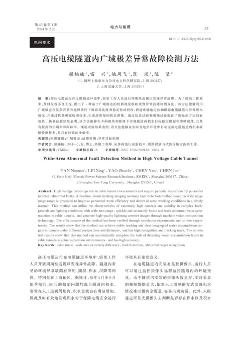 关键词:电缆隧道;广域极差;故障检测;异常目标识别