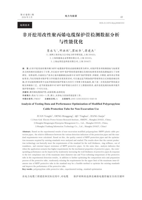 Abstract:Based on the experimental results of non-excavation modified polypropylene (MPP) plastic cable pro⁃
