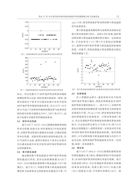 图 5 环刚度检测结果与标准要求的相对差值计算结果 图 6 维卡软化温度检测结果与标准要求的相对差值计算结果