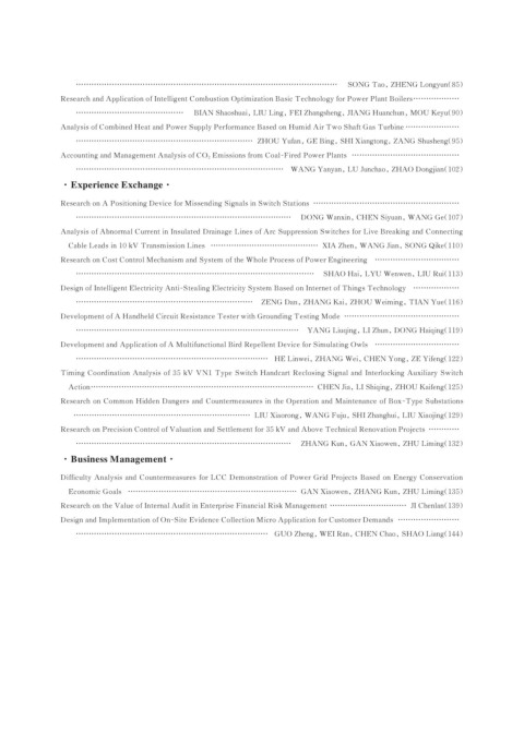 Cable Leads in 10 kV Transmission Lines …………………………………… XIA Zhen, WANG Jian, SONG Qike(110)
