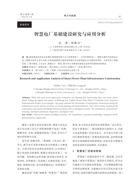 Key words:smart power plants;ntelligent security,3D visualization,personnel positioning,integrated intelli⁃