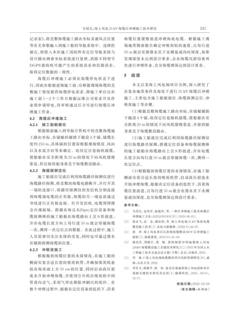 韦国宝:海上风电 35 kV 海缆后冲埋施工技术研究 245