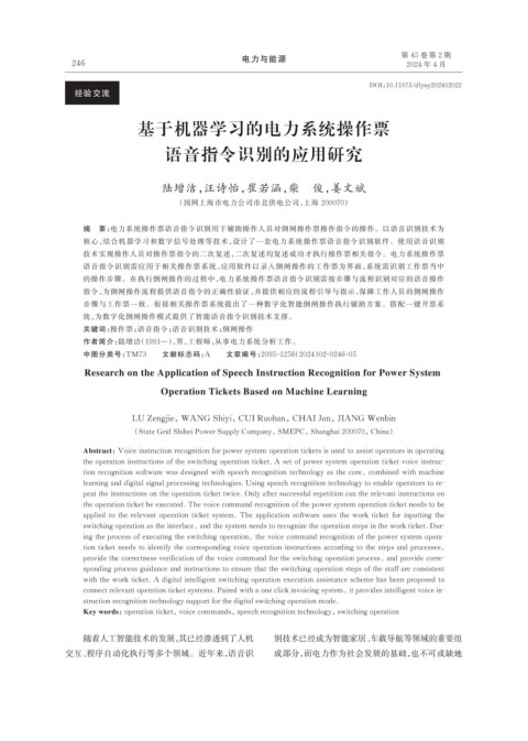 ing the process of executing the switching operation, the voice command recognition of the power system opera⁃