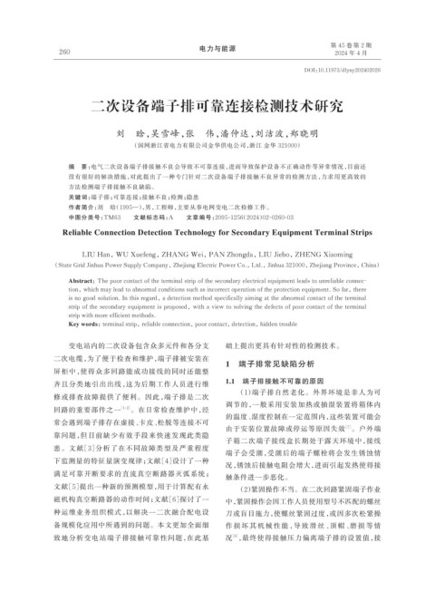 没有很好的解决措施,对此提出了一种专门针对二次设备端子排接触不良异常的检测方法,力求用更高效的