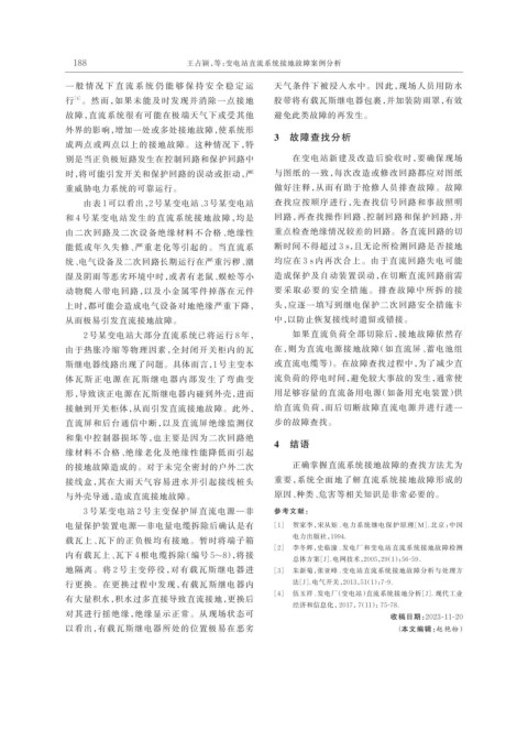 188 王占颖,等:变电站直流系统接地故障案例分析