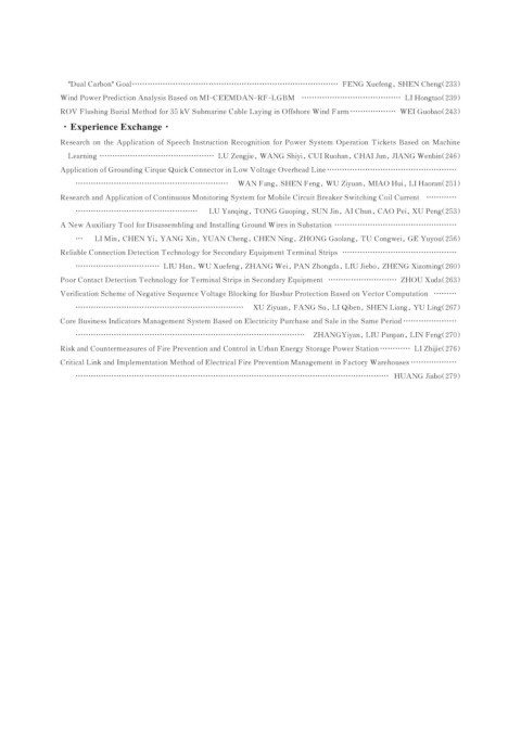 Poor Contact Detection Technology for Terminal Strips in Secondary Equipment ……………………… ZHOU Xuda(263)
