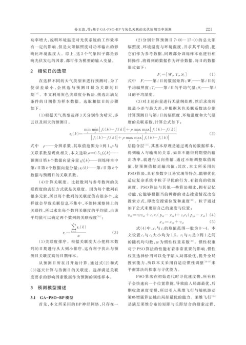 孙玉波,等:基于 GA-PSO-BP 与灰色关联的光伏短期功率预测 221