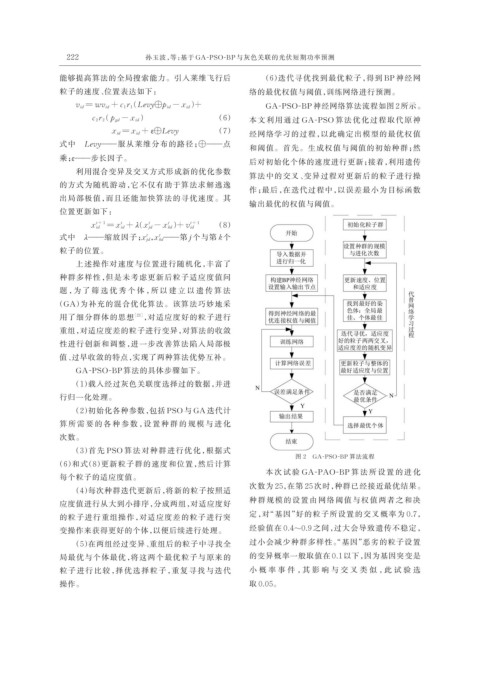 v id = wv id + c 1 r 1 ( Levy⊕p id - x id )+ GA-PSO-BP 神经网络算法流程如图 2 所示。