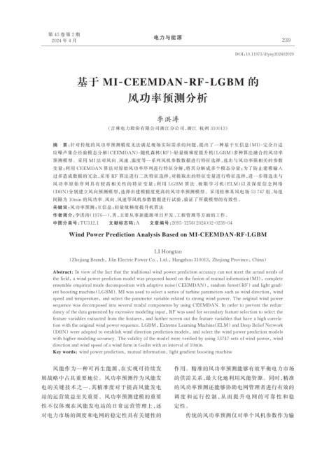 Key words:wind power prediction,mutual information,light gradient boosting rnachine