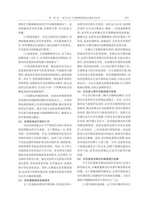 梁 颖,等:一起 500 kV 主变跳闸故障及运维技术分析 383