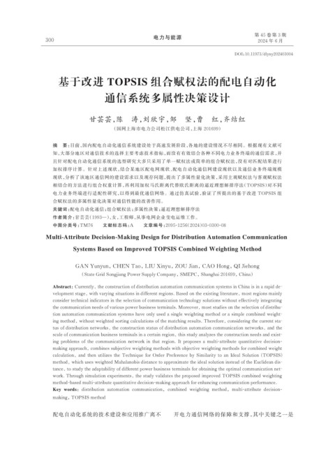 Key words:distribution automation communication,combined weighting method,multi-attribute decision-