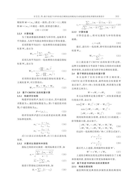 甘芸芸,等:基于改进 TOPSIS 组合赋权法的配电自动化通信系统多属性决策设计 303