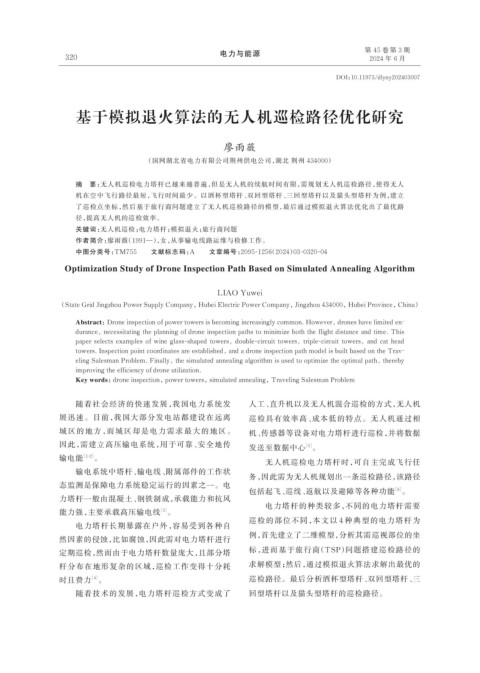 关键词:无人机巡检;电力塔杆;模拟退火;旅行商问题