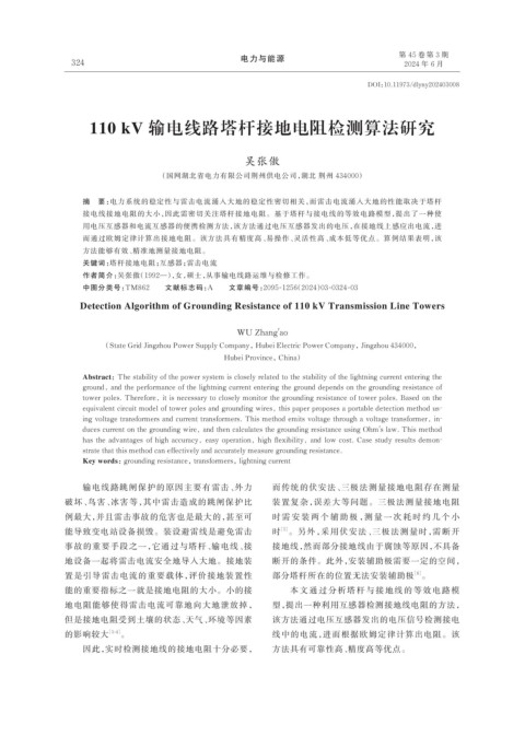 equivalent circuit model of tower poles and grounding wires, this paper proposes a portable detection method us⁃