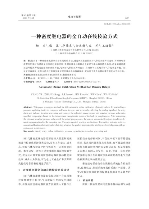 等,传统的密度继电器校验方法需要人工操作且 所设计校验装置利用监测本体的内部气体进