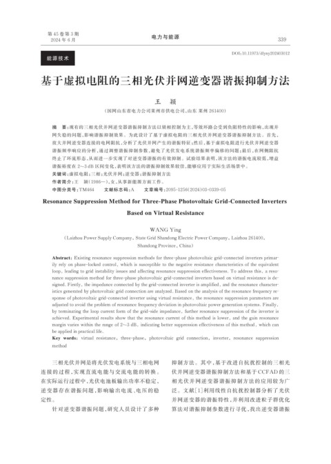 nance suppression method for three-phase photovoltaic grid-connected inverters based on virtual resistance is de⁃