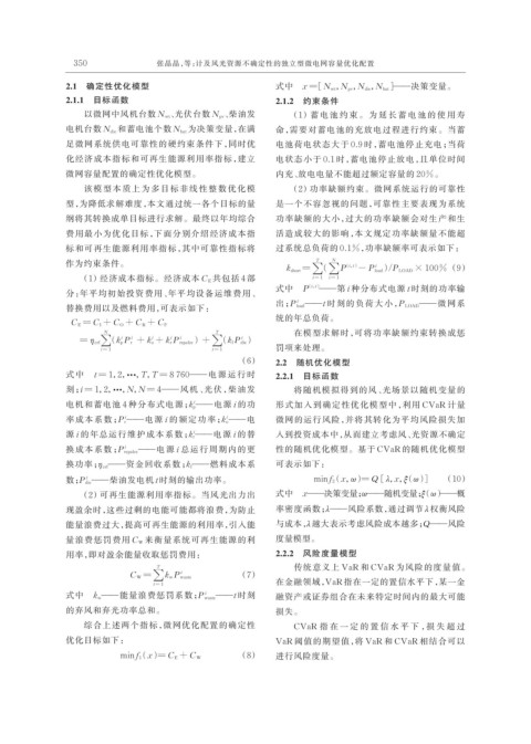 2.1 确定性优化模型 式中 x =[ N wt,N pv,N die,N bat ]——决策变量。