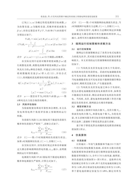 式中 ψ ( x,ω )——f 1 ( x,ω )小于阈值 α 的概率。 力的优先次序,其对最后的微网优化配置结果影