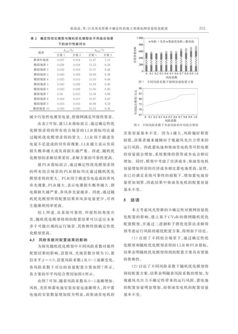 配置结果的影响,设置风、光场景数分别为 10,置 结果表明随机优化模型得到的配置方案具有更强